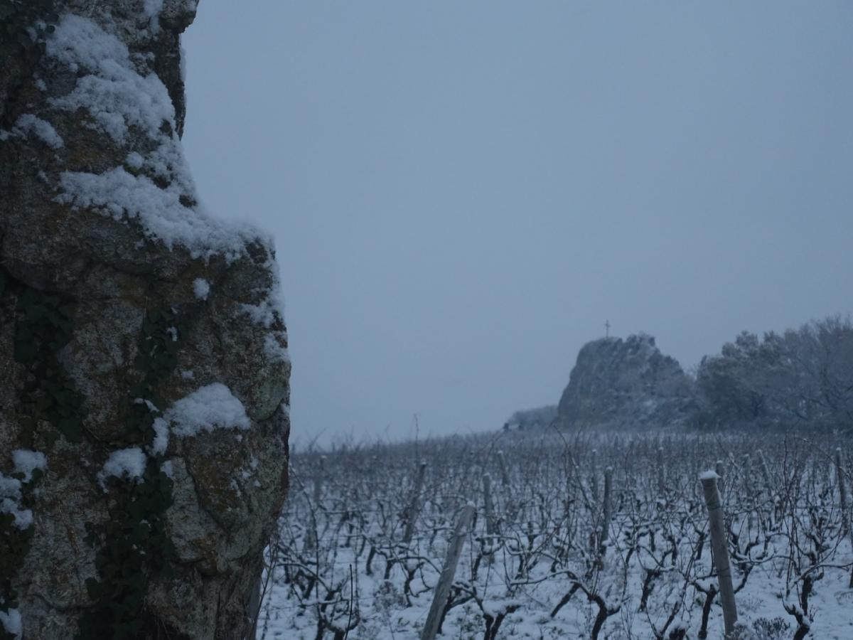 À l’origine, le terrain était parsemé de 48 menhirs, vestiges de rituels anciens, dont deux demeurent encore aujourd’hui. Ces pierres dressées témoignent d’une énergie tellurique particulière, toujours perceptible dans l’atmosphère du vignoble.