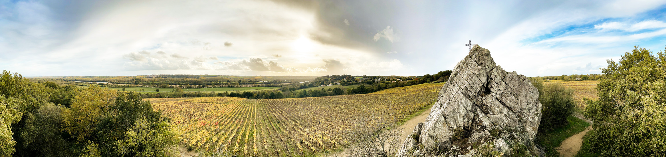 Vue imprenable sur la Loire et les coteaux d'Ancenis depuis le cœur du vignoble, dans un cadre naturel préservé.